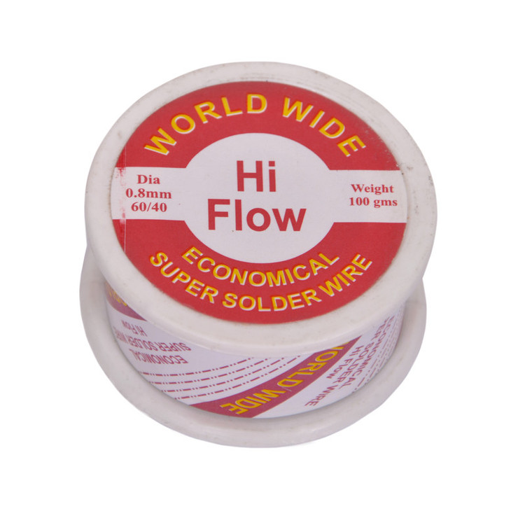جزئیات: سیم لحیم برند WORLD WIDE قطر 0.8 میلیمتر HI FLOW 60/40 حلقه 100 گرمی