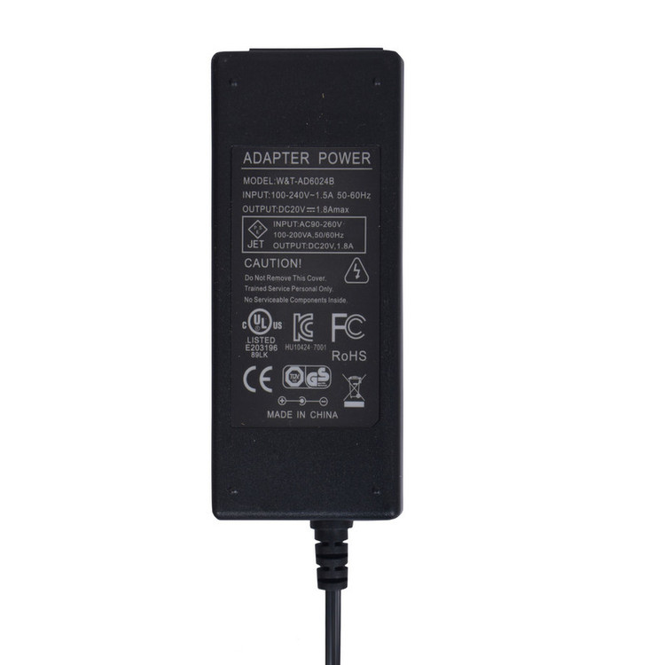 آداپتور 20 ولت با خروجی واقعی 1.8 آمپر طول سیم:170 سانتی متر قطر فیش :5.4 میلی متر