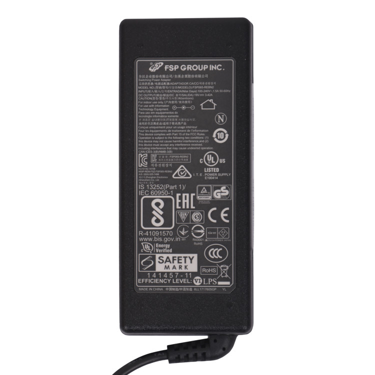 آداپتور 19 ولت 3.42 آمپر از برند معتبر FSP دارای چندین استاندارد جهانی که فیش این کالا سایز استاندارد دارد.