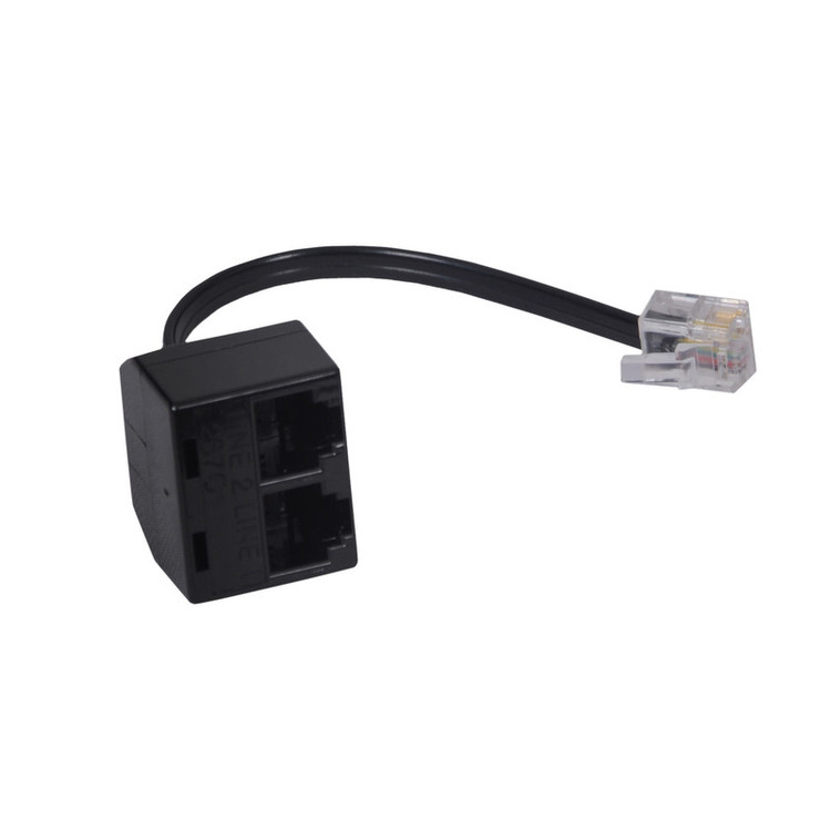 تبدیل یک به دو تلفن دارای دو عدد مادگی سوکت تلفن و ورودی سیم دار با سوکت تلفن.