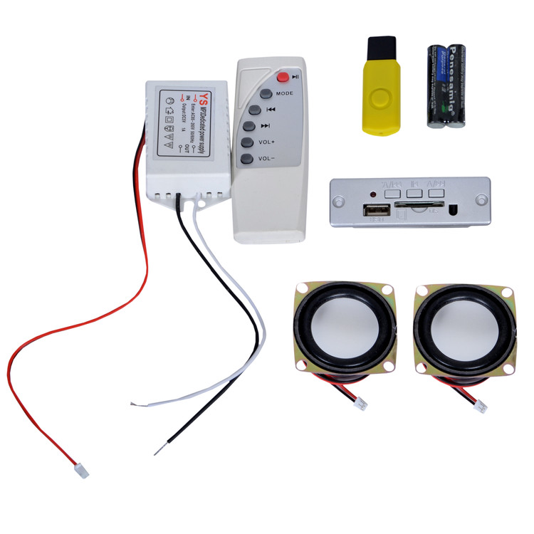 سایر توضیحات: مجموعه کامل قابل نصب روی مبل . تخت خواب . کابینت . لوسر و....... این پلیر فلش خور دو عدد بلندگو و یک پنل فلش خور دارد که روی هر وسیله ای نصب میشود . مناسب تولید کنندگان سویس چوب خانه . تمام اجزای این مجموعه کامل به راحتی با سوکت به یکدیگر متصل میشود .