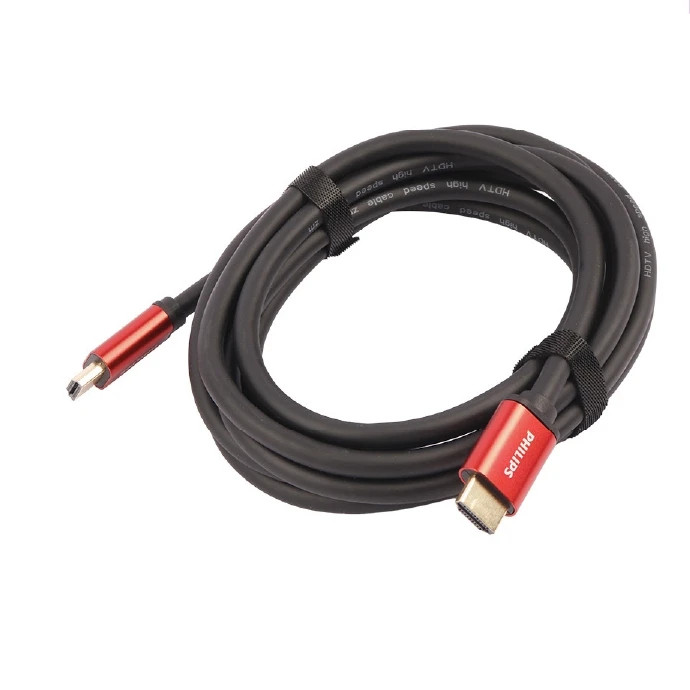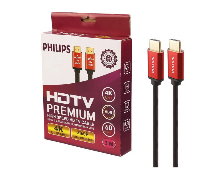 کابل HDMI PHILIPS دارای سریهای فلزی صیقل خورده و کابلی از جنس الیاف در هم تنیده آلومینیومی و نایلونی میباشد که باعث میشود در طول زمان در اثر کشش، فشار و ضربه موجب قطعی نشود. کابل اچ دیام آی PHILIPS ۴k طولی معادل 3 متر دارد که آزادی عمل بسیاری به کاربر داده تا بتوانید آزادانه با آن کار کند. مدل این کابل HDMI ۲.۰ است که برای انتقال تصاویر و فیلم ۴K کاملا مناسب است و انتقال تصاویر و فیلم با کیفیت فوق العاده بالا و همچنین ورژن HDMI ۲.۰ با قابلیت Ethernet، شرکت PHILIPS کانکتورهای این کابل را با کیفیت فوق العاده تولید کرده و کانکتورها از روکش فلزی سود جستهاند تا انتقالی با کیفیت و ماندگار داشته باشند.