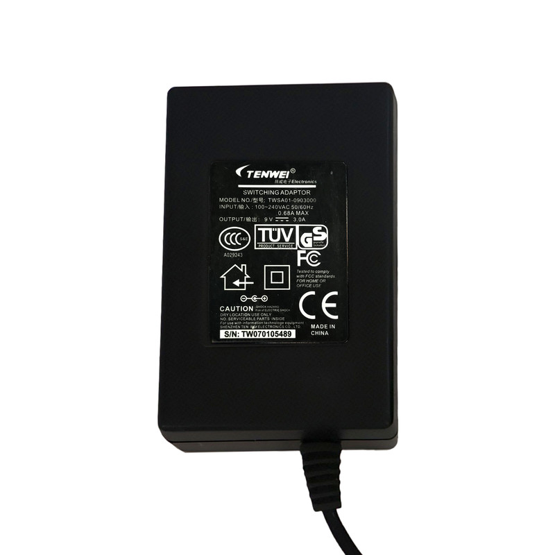 آداپتور 9 ولت با خروجی واقعی 3 آمپر از برند معتبر TENWEI دارای استاندارد های آلمان آمریکا چین و اروپا و همچنین دارای دو عایق امنیتی.